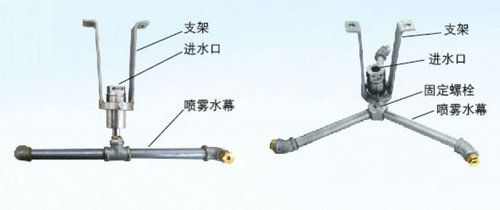 本裝置,通過水壓沖擊空氣產(chǎn)生反方向的推力使噴霧桿自動旋轉(zhuǎn),形成方圓霧團,無需機械傳動。